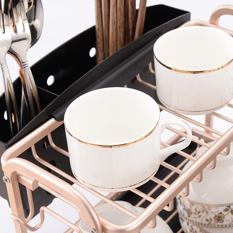 HOT Sale Aluminum dishwashing rack kitchen storage box storage drainer drying board shelf sink knife fork co