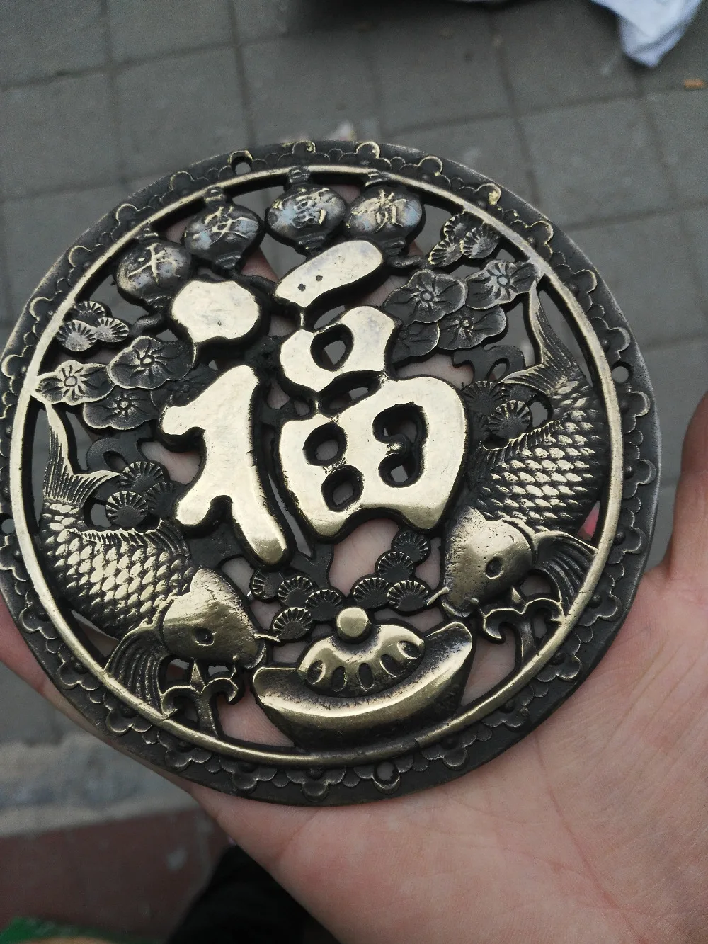 Hot Sale China's feng shui brass luck fish and fu fo word statue Hang adorn-Family decoration bring good luc