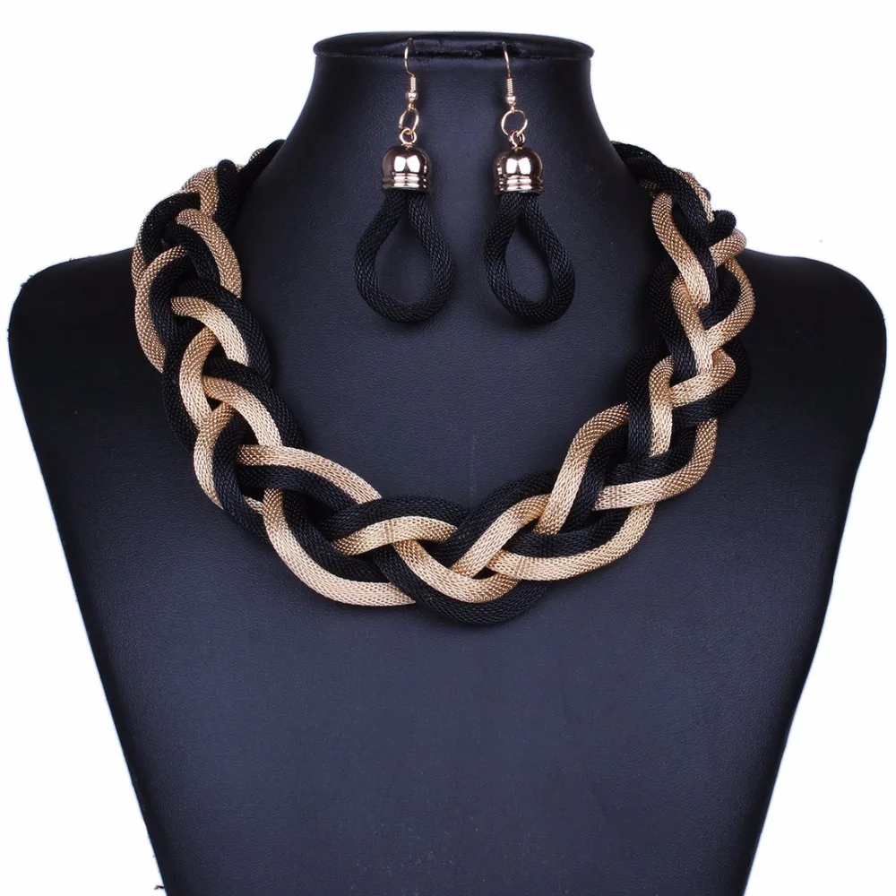 Hot Sale Wholesale 12pcs Statement necklace Fashion for Women 2016 Big Gold Chain metal weaving Choker Neckl